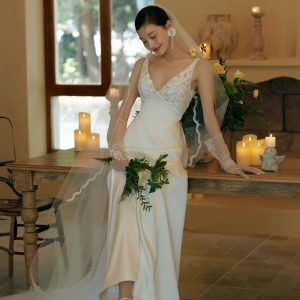 Satin wedding dress Bridal outdoor shooting gown forest style Super fairy white fishtail dress