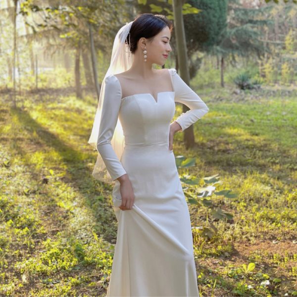 Satin wedding dress Bridal outdoor shooting gown forest style Super fairy white fishtail dress quantity
