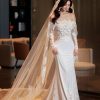 / French Light wedding dress bride high-end Retro style Long sleeves Lace One shoulder Spring and Autumn Fish tail dress
