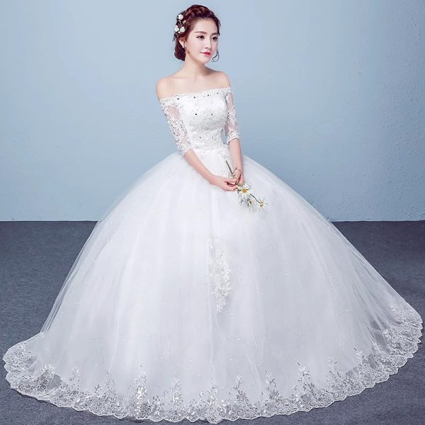 / Wedding dress New style Double collar One shoulder Trumpet Tail bride Korean full dress Lace summer Show off weight